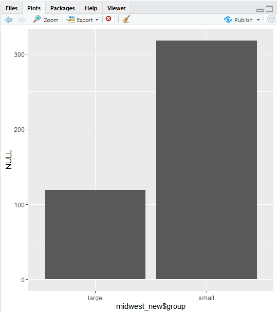 table(midwest_new$group) library(ggplot2) qplot(midwest_new$group)