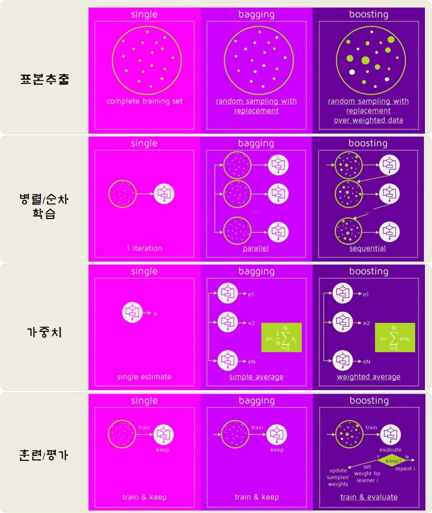 bagging과 boosting 차이점 [참고] https://statkclee.github.io/ml/ml-tree-model.html#1_%EB%82%98%EB%AC%B4%EA%B8%B0%EB%B0%98_%EB%AA%A8%ED%98%95_1_2 [참고] 실무에서 써먹는 머신러닝 with R