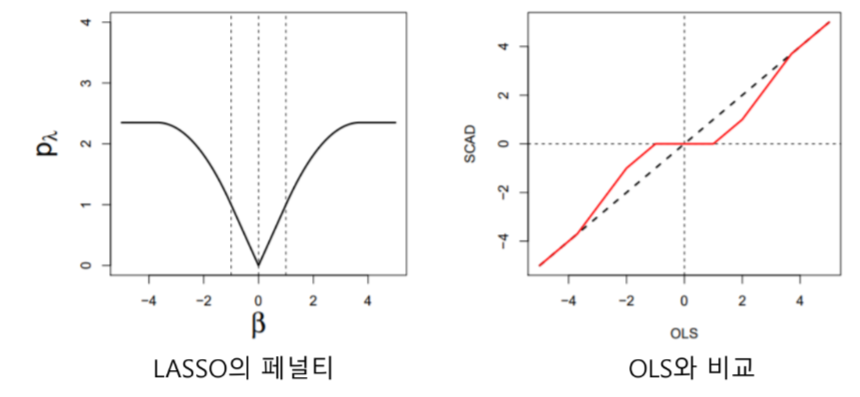 이러한 모형의 왜곡을 최소화 하기 위해 LASSO를 향상시킨 방법이 있는 "SCAD" 라는 변수 선택 법이다.