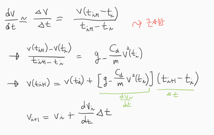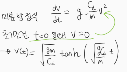 위 속도를 계산할 수 있는 미분방정식이 수학적 모델이다.