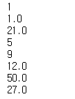 a = [1, 2, 42, 5, 9, 24,100, 54] i = 0 while i <len(a): if a[i] % 2: #홀수인 경우만 print ( a[i]) else: print(a[i]/2) i += 1
