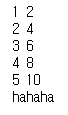 a = [1, 2, 3, 4, 5] for i in a: print(i, i*2) print('hahaha') ###################### a = [1, 2, 3, 4, 5] for x in a: print (x, x * 2) print('hahaha')