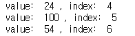 # while키워드를 사용하여 리스트의 아이템을 출력하기 a = [1, 2, 5, 8,24,100] i = 0 while i <len(a): print ('value: ', a[i], ', index: ', i) i += 1