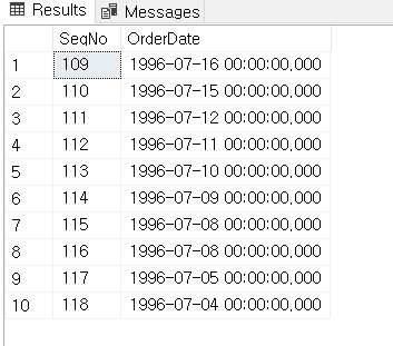 SELECT SeqNo = NEXT VALUE FOR dbo.SeqNo OVER (ORDER BY OrderDate DESC) , OrderDate FROM dbo.Orders WHERE OrderID BETWEEN 10248 AND (10248 + 9);
