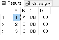 SELECT * FROM (VALUES (1, 'A'), (2, 'B'), (3, 'C')) AS t1 (A, B) CROSS JOIN (VALUES ('DB', 100)) AS t2 (C, D);
